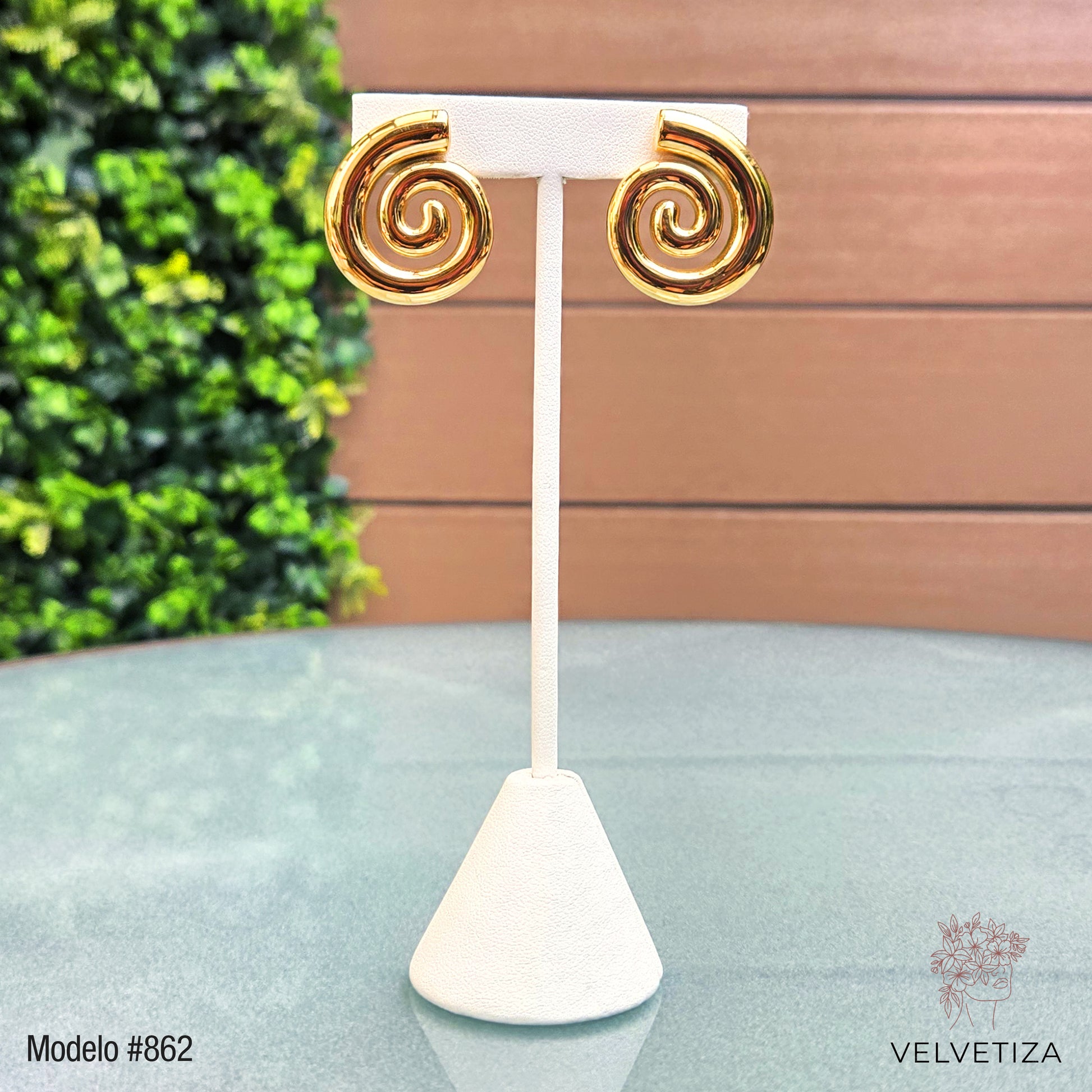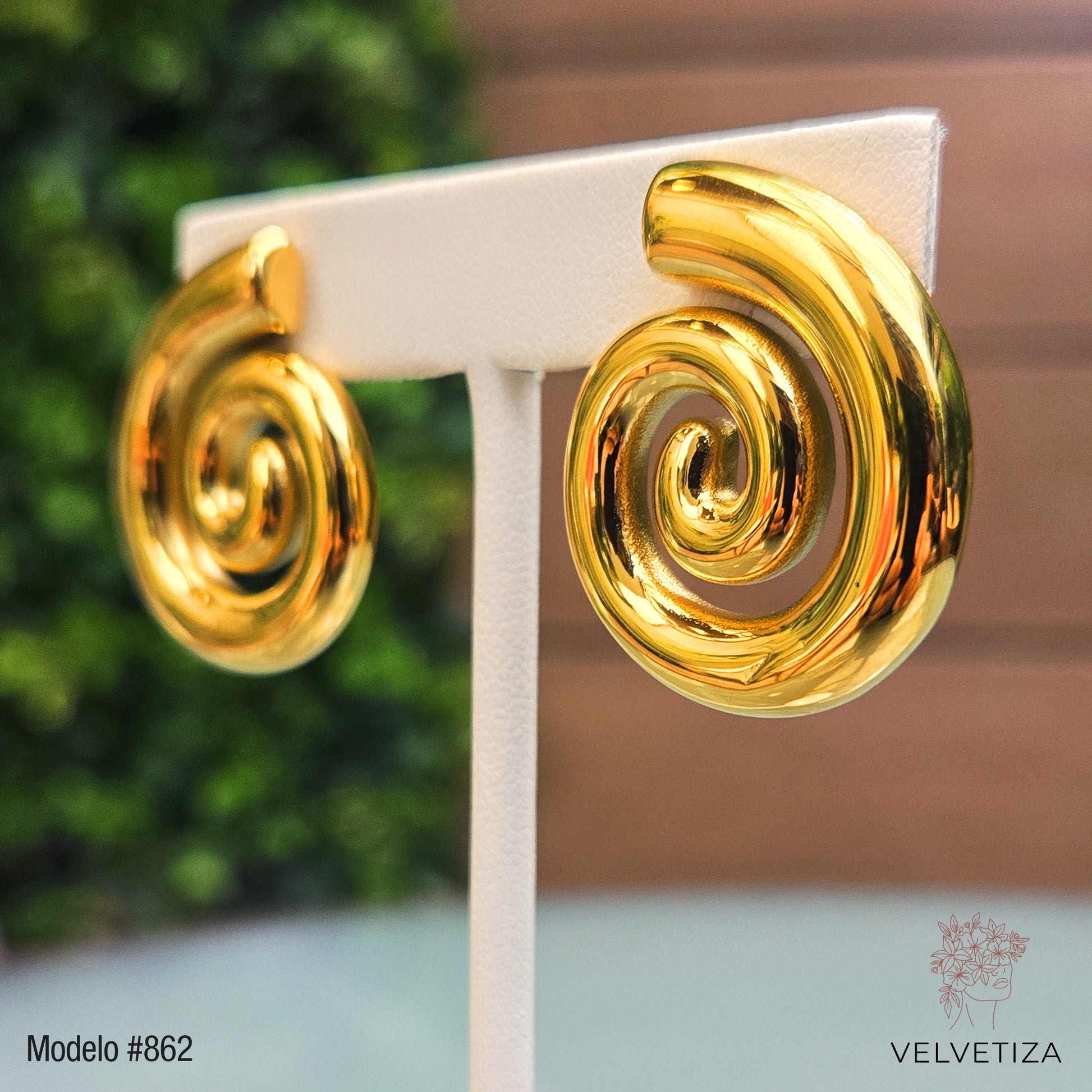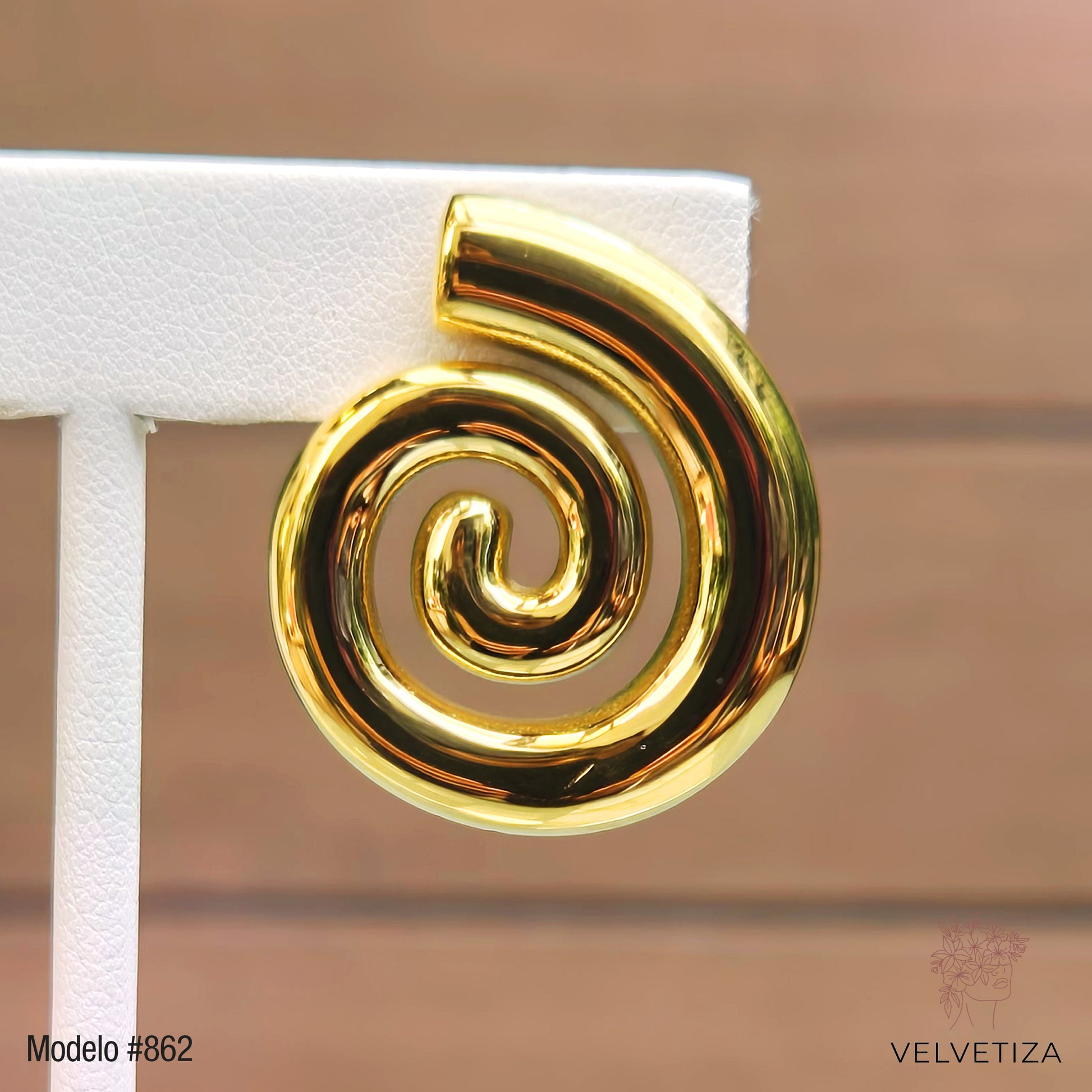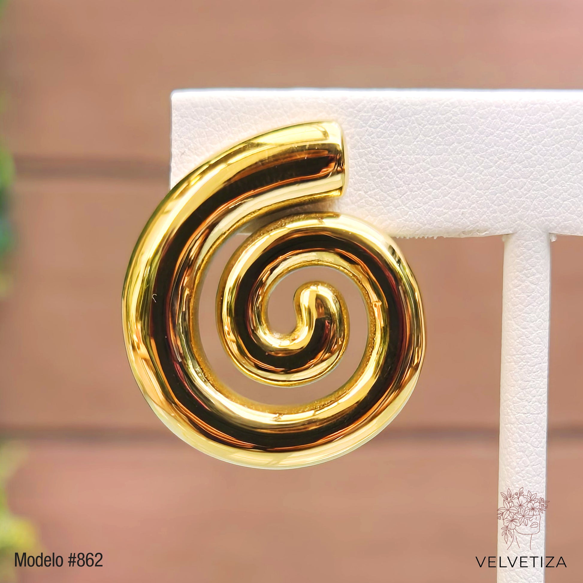 Aretes dorados tipo espiral.