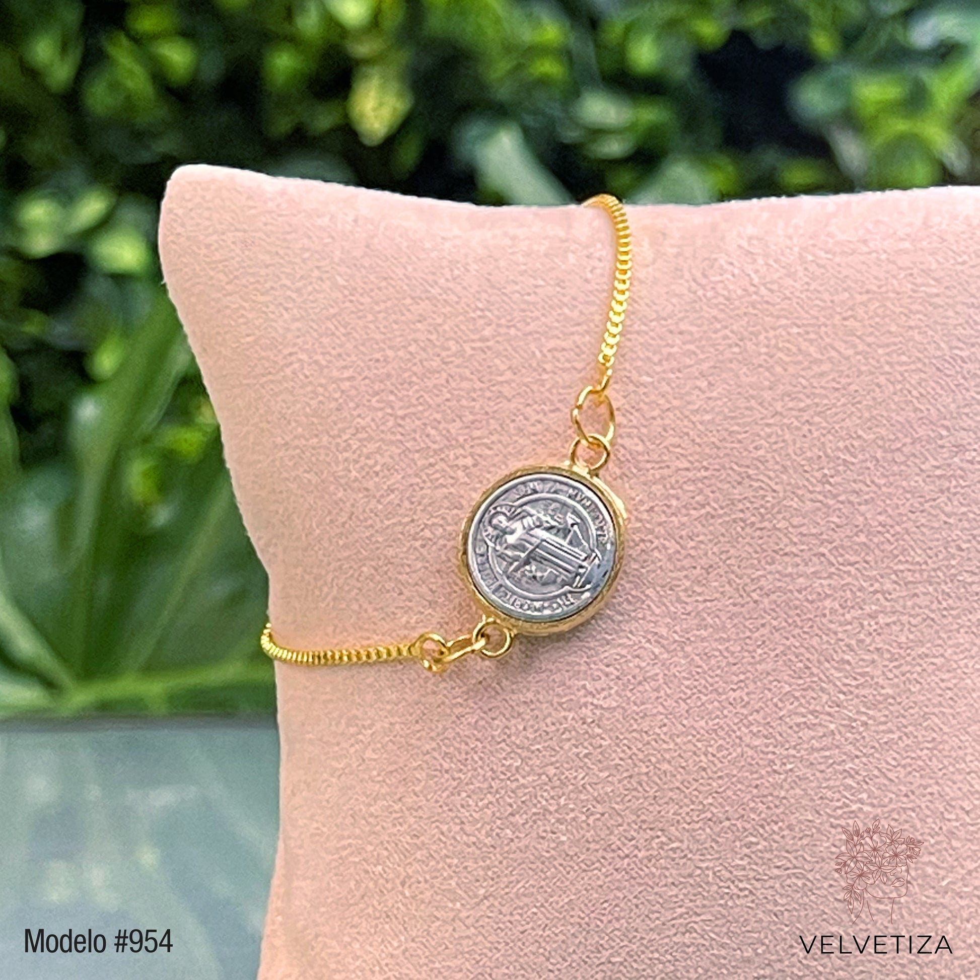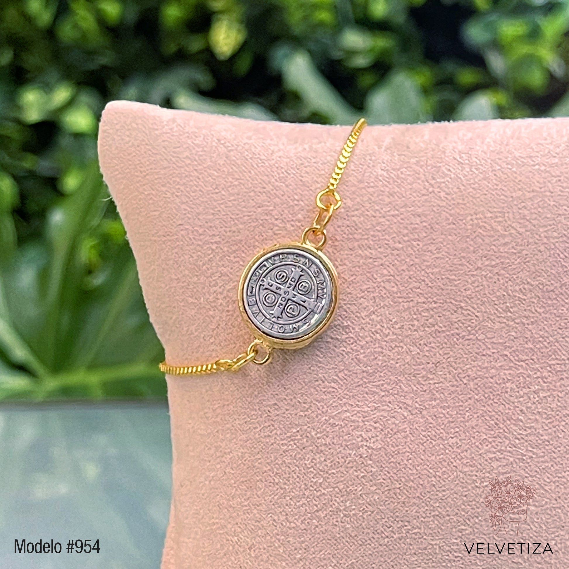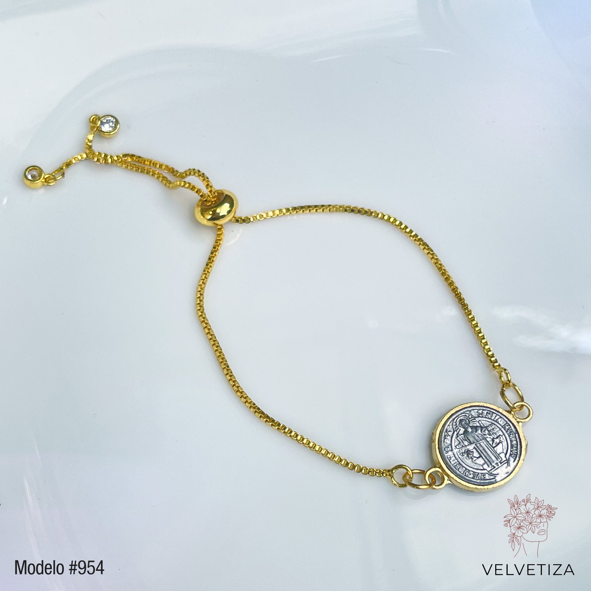 Pulsera de San Benito color plateada. Ajustable.